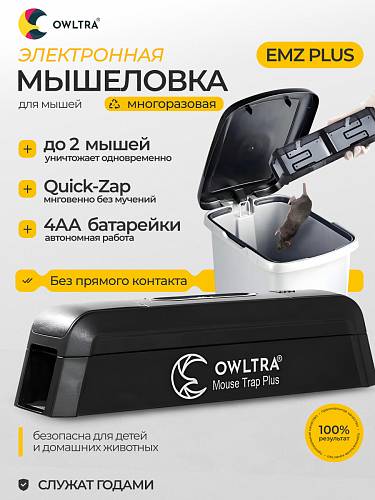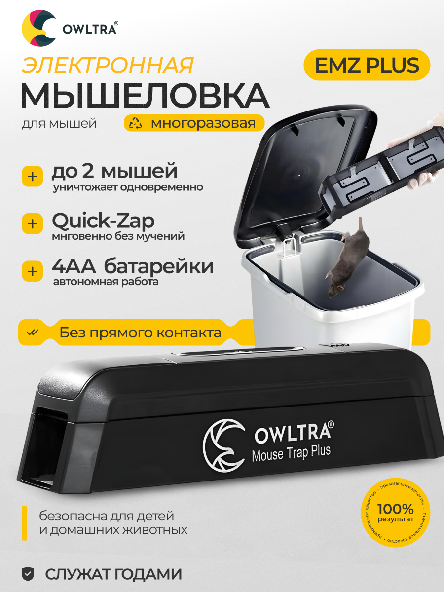 Owltra - это электронная мышеловка, которая позволит Вам избавиться от больших популяций грызунов. Небольшая коробочка, в которую Вы можете поместить приманку для грызуна. На дне ловушки размещена пластина из нержавеющей стали, которая генерирует около 5000-8000 вольт высокого напряжения при срабатывании датчиков.